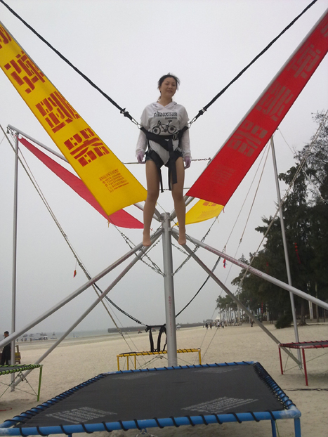 蹦极跳床它既能健身又有很强的趣味性,不分男女老少,无需高超技巧,谁都能勇敢地腾空一试,领略到腾飞的乐趣,将是何等自由而又超然的感觉。