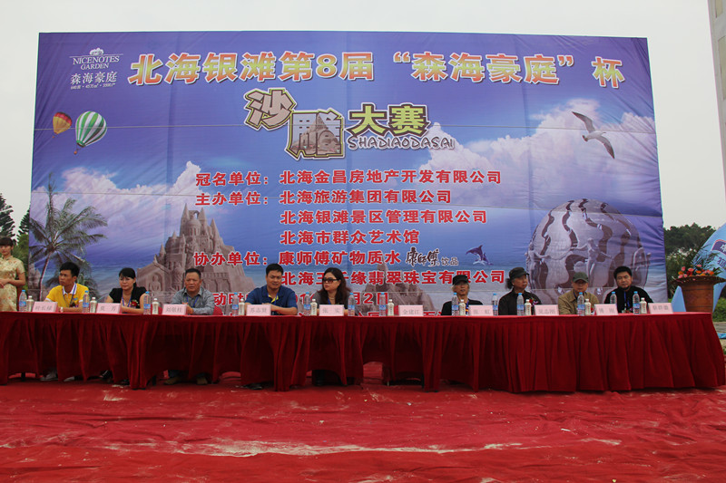 "To strengthen the protection of cultural heritage, historical and cultural connotation of mining, Beihai Silver Beach eighth" Senhai villa "cup of sand sculpture contest was held in May 2nd in Silver Beach scenic area, competition by the general manager of Beihai Silver Beach Scenic Area Management Limited Su Zhixian speech, Beihai Tourism Group Chairman Zhang Shi announced the opening of.