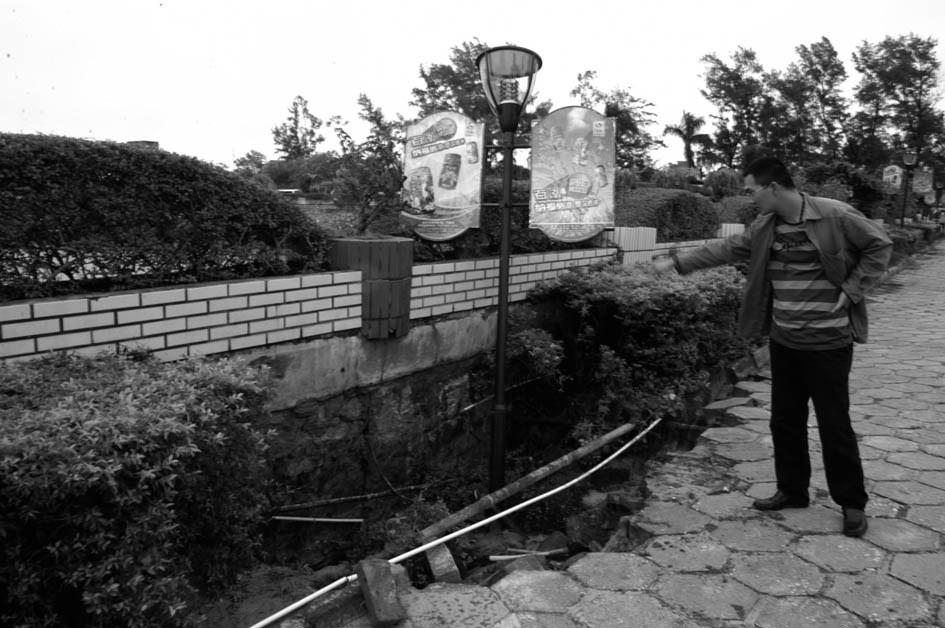 景区内塌陷的道路及花圃。
