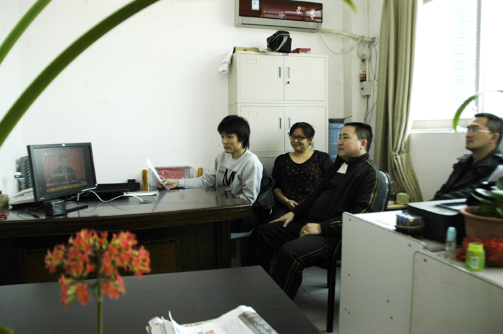 北海银滩景区管理有限公司组织职工观看学习2013年“两会”全国人大一次会议实况现场。