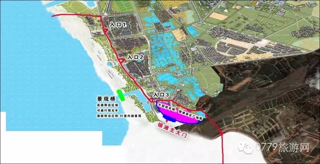 原有的银滩区域,以银滩中路为界,建满了酒店,已没有拓展的余地。而现在已拆迁的白虎头村及红树林吊桥附近的空白区域(紫色线区域)正好可以利用,完全可以按照5A级景区的标准打造成大型停车场、银滩景区主广场、游客服务中心、银滩纪念品商店、综合服务体等(如果此块地又被开发成商业楼盘,本人就无语了。哪怕是行行好留一片出来也好吧)。
