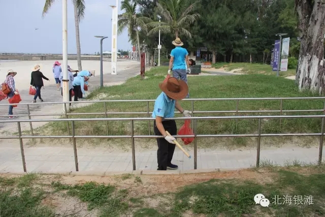 景区环卫人员为游客展现一个海净、沙白、整洁的银滩景区