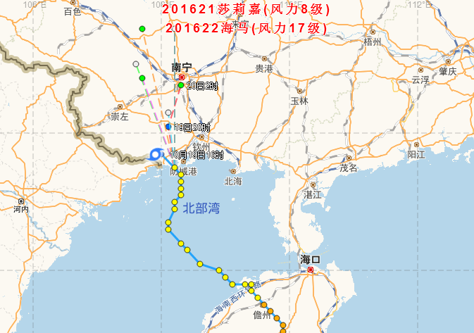今年第21号台风“莎莉嘉”(强热带风暴级),于19日凌晨0点前后从海南移入北部湾海面,早晨5点钟,中心位于北纬20.4度,东经108.3度,也就是在距离中越交界处南偏东方向130公里的北部湾北部海面上,中心附近最大风力10级,风速达到25米每秒。19日下午16:00在防城港市再次登陆。受其影响, 北海市气象台今天16时更新发布台风蓝色预警:24小时内北海市沿海及北部湾海面将出现7-8级阵风。北海银滩旅游景区继续做好相关防台风工作,确保游客生命财产安全。