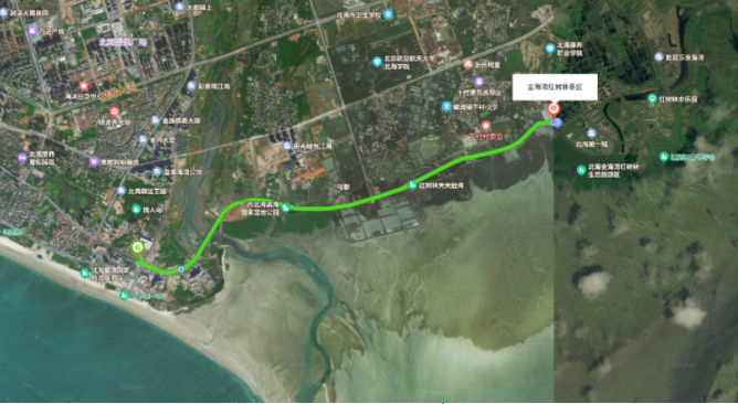北海银滩“天下第一滩”与金海湾红树林景区,作为热门网红打卡点,银滩景区连接金海湾红树林景区公交线路开通,途经广西北海滨海湿地公园,沿途清新的空气,海景大道靓丽的风景线,此路段开通具有重大发展意义,势必将北海这个旅游城市的旅游行业能力推向一个崭新的高潮。