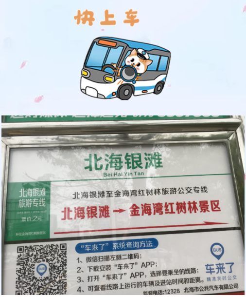 在我市交通主管部门精心指导下,为满足即将到来的旅游旺季游客的出行需求,经前期对线路走向、运力安排及候车区域划定等进行详细调研,银滩景区⇄金海湾红树林景区公交专线于近期已顺利开通!
