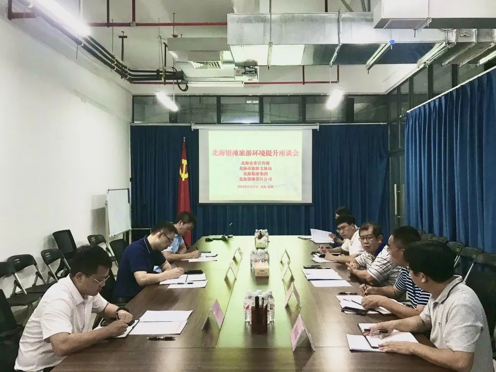 会上,北海旅游集团党委书记、董事长蒋德明与北海旅游集团总经理舒英杰汇报了北海银滩国家级旅游度假区目前旅游环境提升的工作情况。