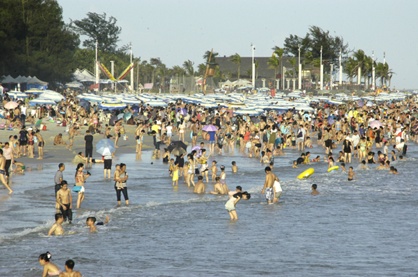7月13至15日,广西北海银滩三天共接待国内外游客十二万人次,客源主要来自贵州、云南、四川、广西、广东、湖南等地,大部分游客来到银滩都下海游泳。由于近日西南风大浪高,北海银滩景区管理公司总经理苏志贤要求加大海上救生安全防范力度,采取每天两个班次,每班派出救生人员二十多人,分别在银滩公园浴场、海滩公园浴场加强海上安全防范工作,确保游客游泳安全。同时,救生队天天派出救生人员驾艇巡查海面,规劝游客不能游往深海,时刻观察游泳区域险情,其他当班救生队员巡逻在沙滩上,随时听从呼唤营救,力争第一时间赶到险情区域并开展组织营救,确保中外游客来到北海银滩游泳冲浪的安全。据统计,进入旅游旺季以来,北海银滩景区管理公司海上救生队已经成功救起溺水游客十六人,赢得了广大游客的赞誉。