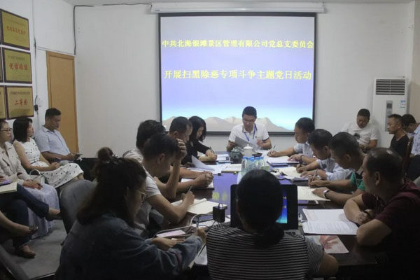 会上,公司党总书记、执行董事曾广志传达学习了关于扫黑除恶专项斗争相关文件精神和扫黑除恶应知应会的知识点,讲述了黑恶势力的巨大危害,并要求全体党员都要深刻认识扫黑除恶面临的严峻复杂形势,深刻认识开展扫黑除恶专项斗争的极端重要性,要严厉打击景区内欺客宰客、不明码标价、诱导消费、扰乱景区秩序等现象,切实维护景区的和谐稳定,弘扬社会主义核心价值观。