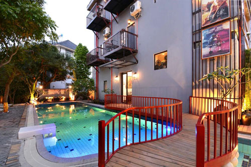 北海映画年代酒店——电影博物馆主题酒店。走进映画年代,花园、泳池、雕塑秀美而精致,电影主题文化扑面而来。百部经典免费观赏,一杯清茶伴你度过好时光。酒店秉承一份人文情怀、专注于旅居艺术营造,让每一位旅者邂逅艺术的美好,收获旅行的别样精彩。